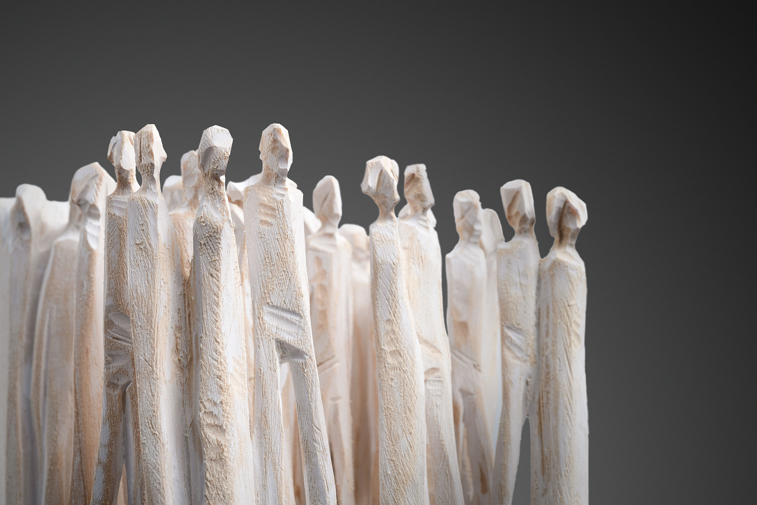 Le opere di Alfons Runggaldier (*1968, Ortisei) parlano di incontro e di dialogo. Con un linguaggio formale sobrio e chiaro, egli condensa l'essenza della vicinanza umana la tensione, la comprensione, la silenziosa forza dell'intervallo che ci unisce e ci separa. Le sue sculture non sono gesti fragorosi, ma segni delicati di relazione: figure che si cercano, che si rivolgono l'una verso l'altra o che rimangono in distanza simboli della convivenza umana. Nel dialogo tra forma e spazio, tra silenzio ed espressione, nascono immagini che vanno oltre il visibile. Nell'arte di Runggaldier l'incontro non è soltanto rappresentato, ma reso percepibile - come invito a riscoprire se stessi e l'Altro.